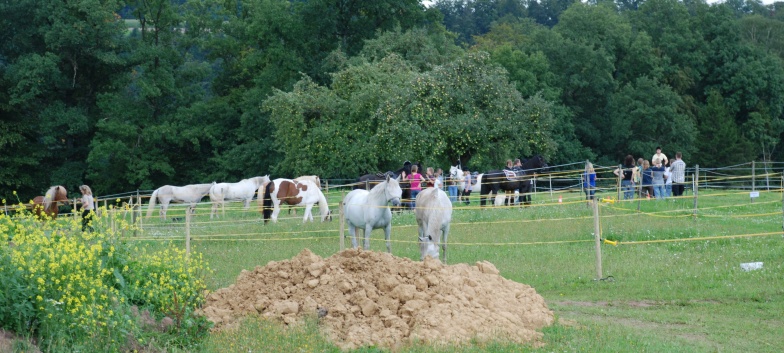 Da wir dieses Jahr, war eine witzige Sache, einen stummen Posten eingeführt hatten, “mussten” wir unsere Teilnehmer gleich auf dem Hof mit der ersten Aufgabe konfrontieren. Pferdefußball war angesagt.